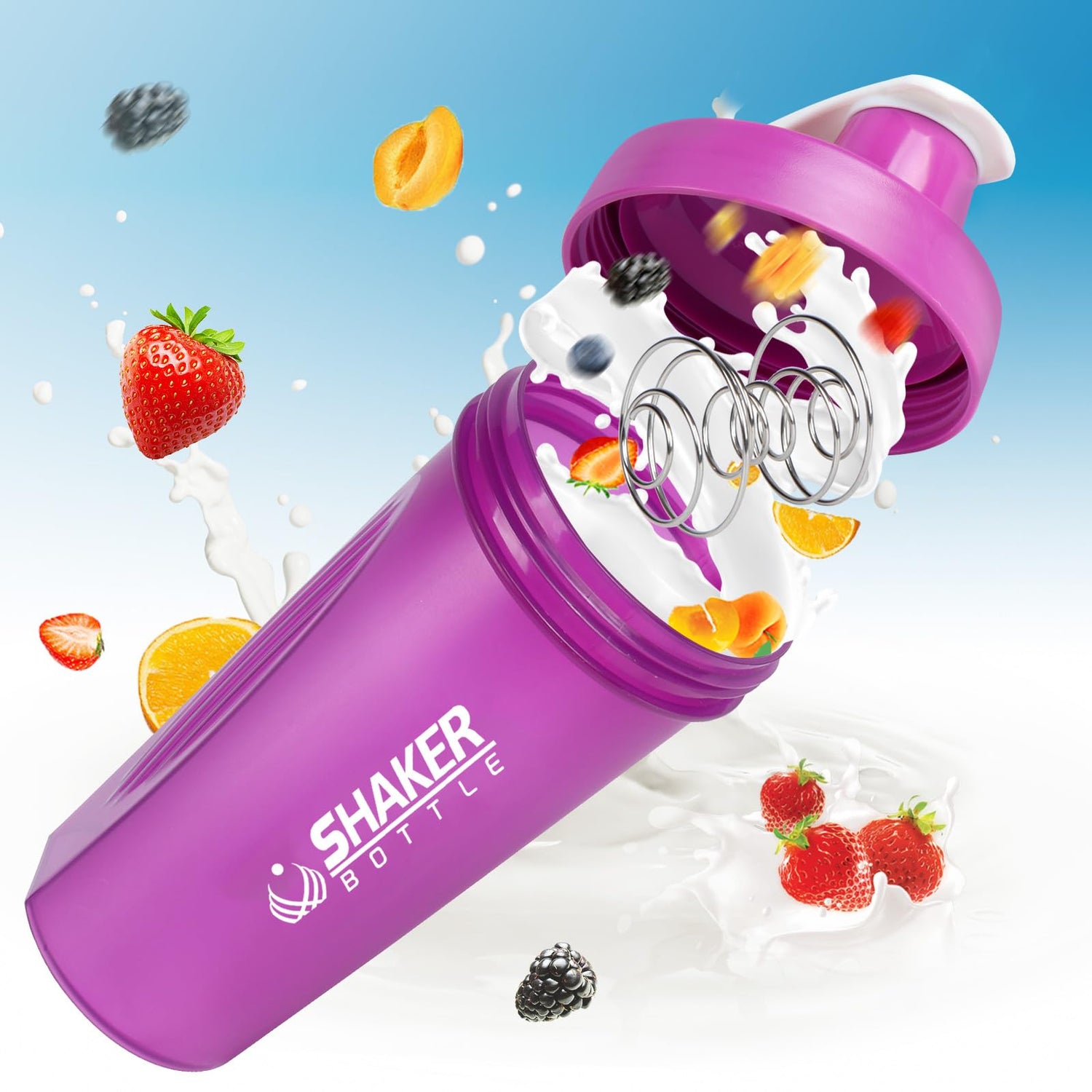 Shaker Bottle - Protein Shaker Cup with Storage Compartments - Leak-Proof Workout Shake Bottles with Mixer for Smooth Mixing-500Ml/16Oz (PURPLE & BLACK)